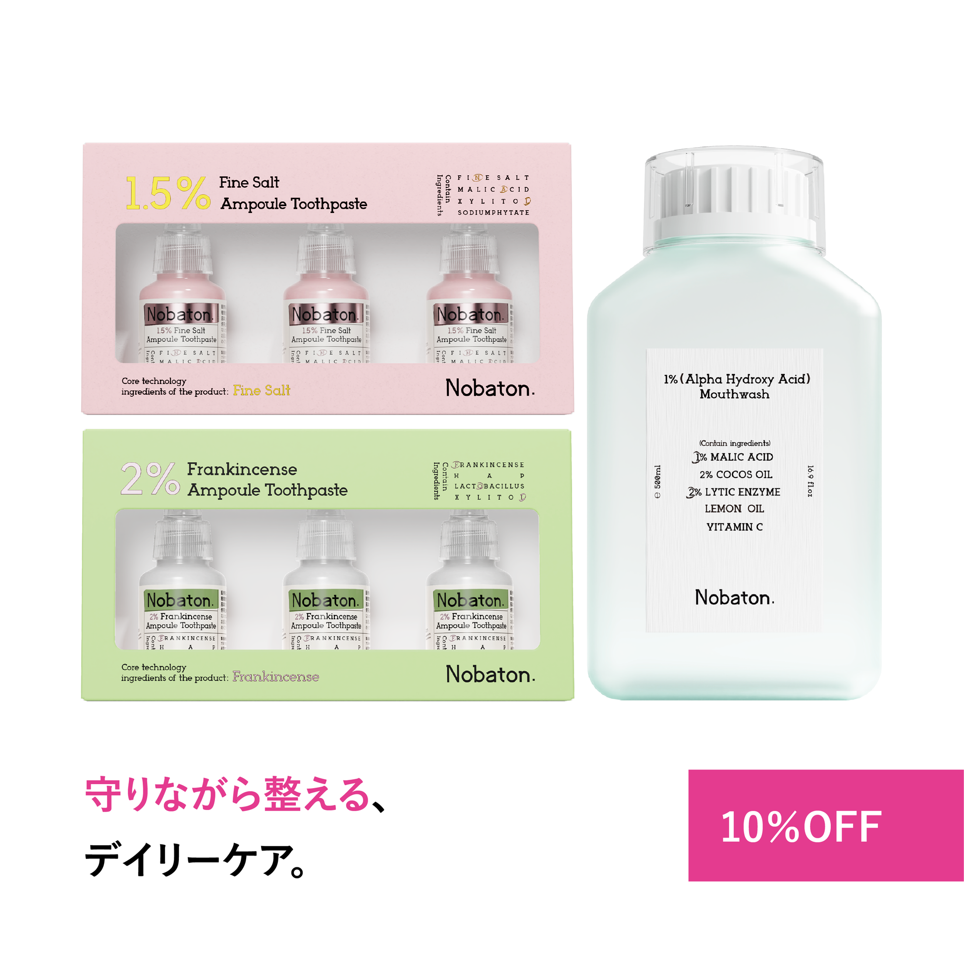 Nobatonのトゥースペースト2種とマウスウォッシュ1種を組み合わせた、