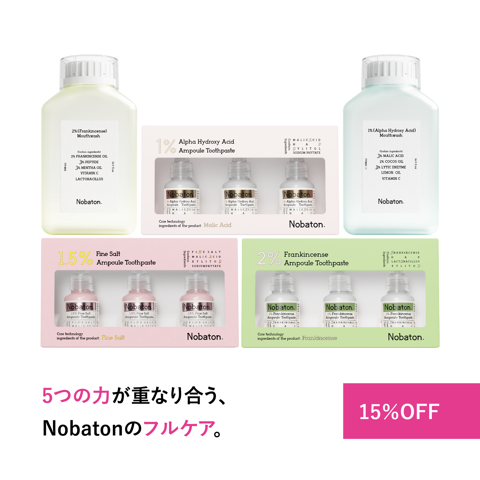 フルケアセット(トゥースペースト3種+マウスウォッシュ2種)